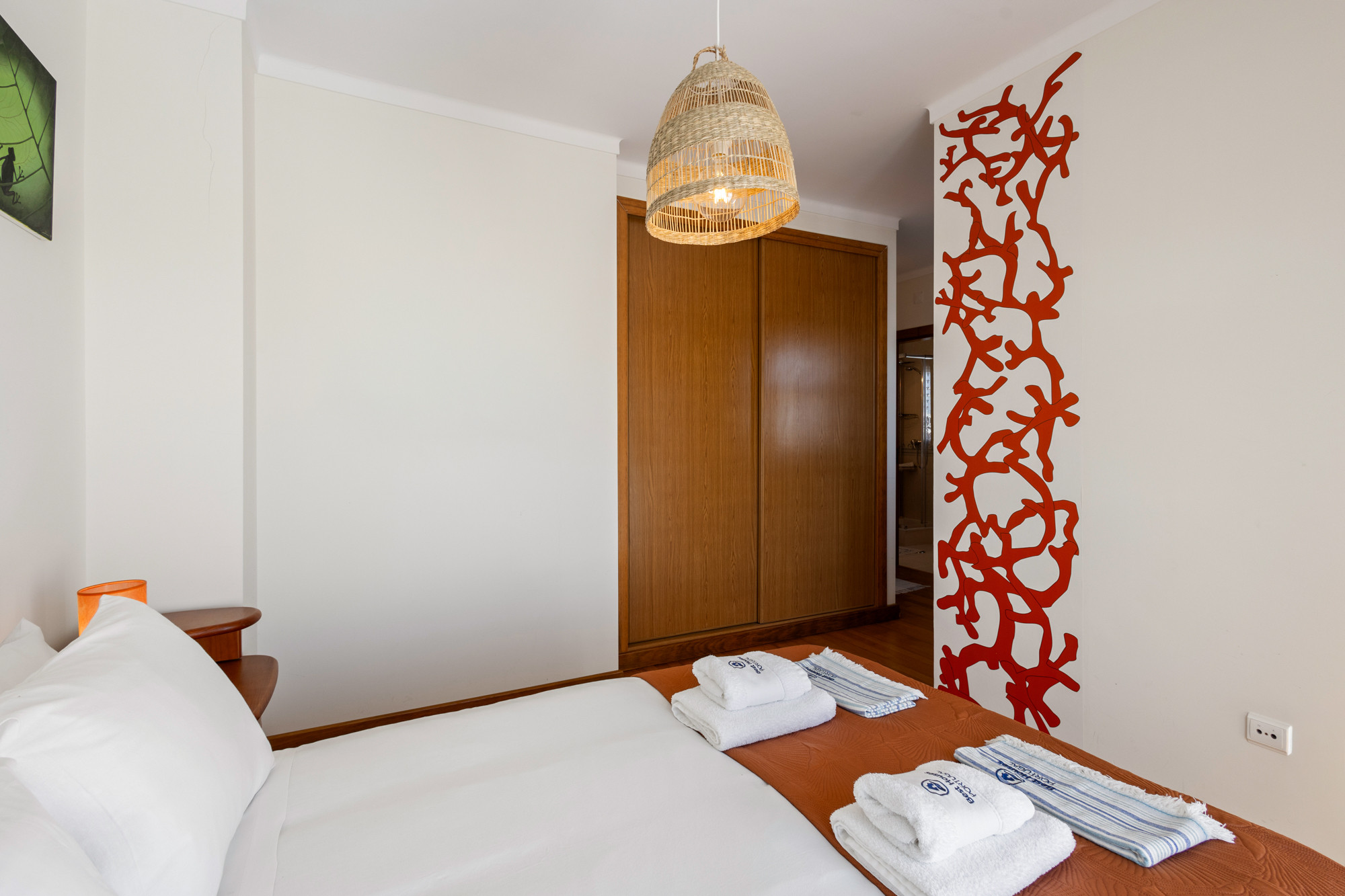 O apartamento conta com dois quartos confortáveis, um quarto com cama de casal, outro com duas camas individuais e uma sala de estar com um sofá-cama de casal, garantindo um descanso tranquilo para todos os hóspedes. A varanda com vista para o mar convida a momentos de contemplação e relaxamento, permitindo que você desfrute plenamente da beleza da paisagem marítima.