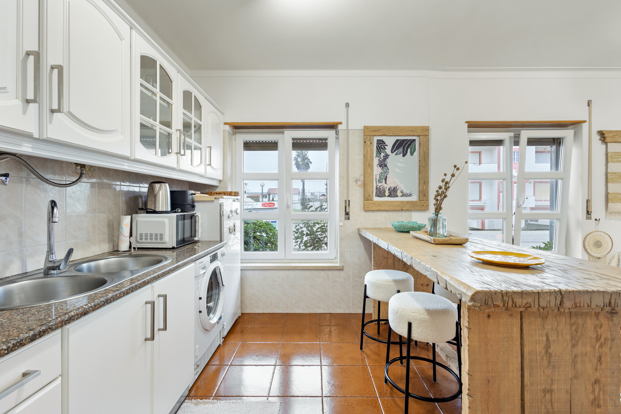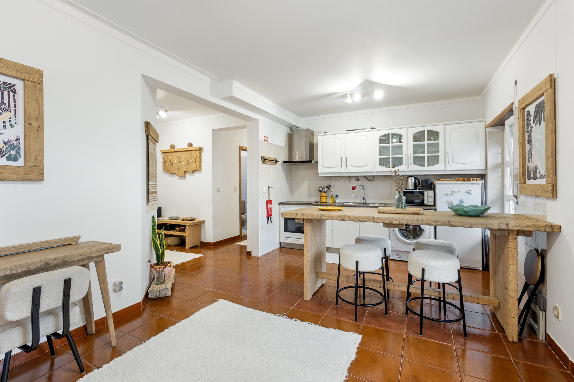 A cozinha totalmente equipada é um verdadeiro destaque, apresentando eletrodomésticos modernos como frigorífico, máquina de lavar roupa, máquina de café, forno, micro-ondas, loiça completa, torradeira e chaleira. Perfeita para quem gosta de preparar refeições caseiras durante as férias. O apartamento também dispõe de internet Wi-Fi, ferro de engomar e aquecimento elétrico para garantir o seu conforto em qualquer época do ano.