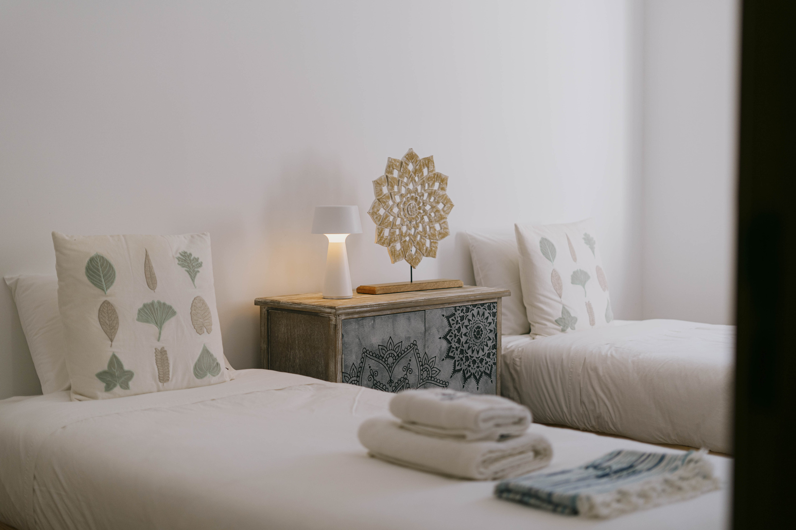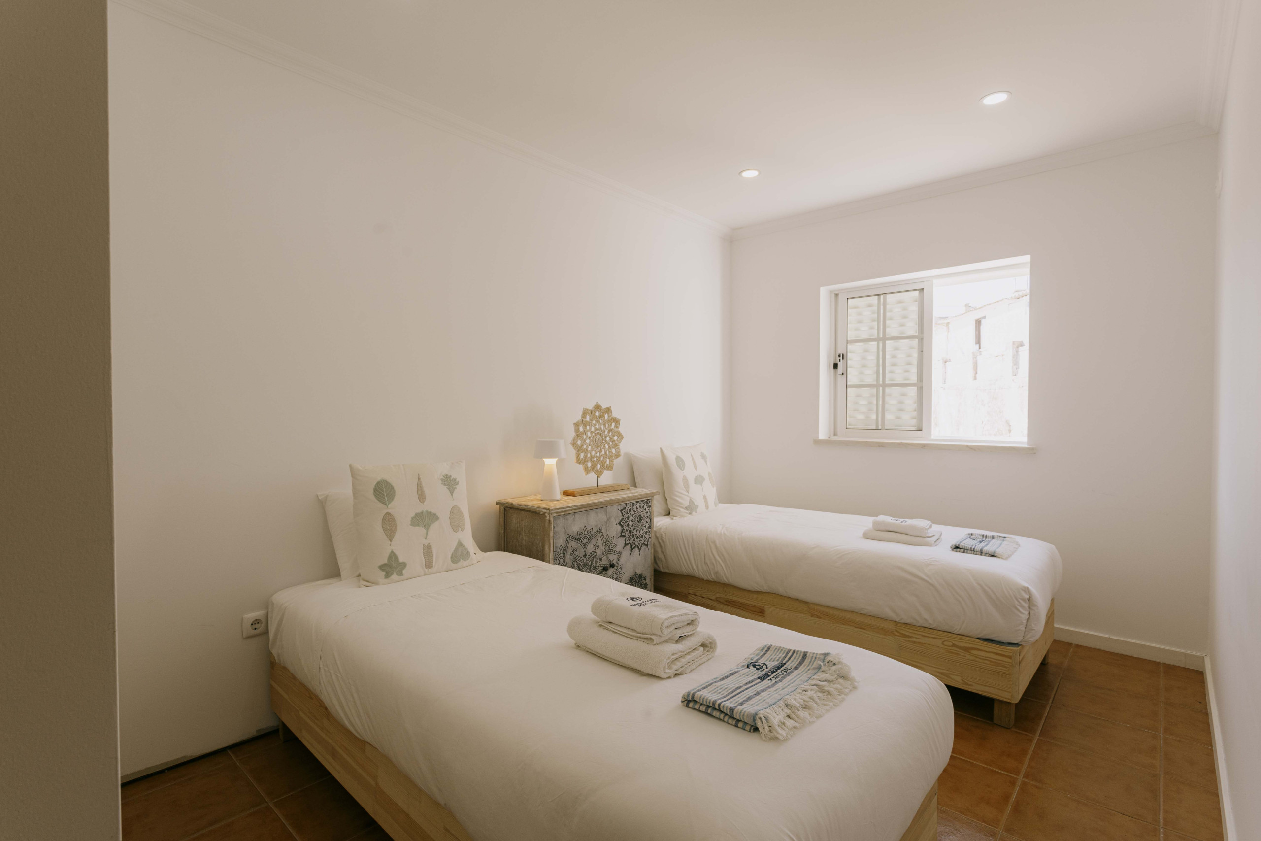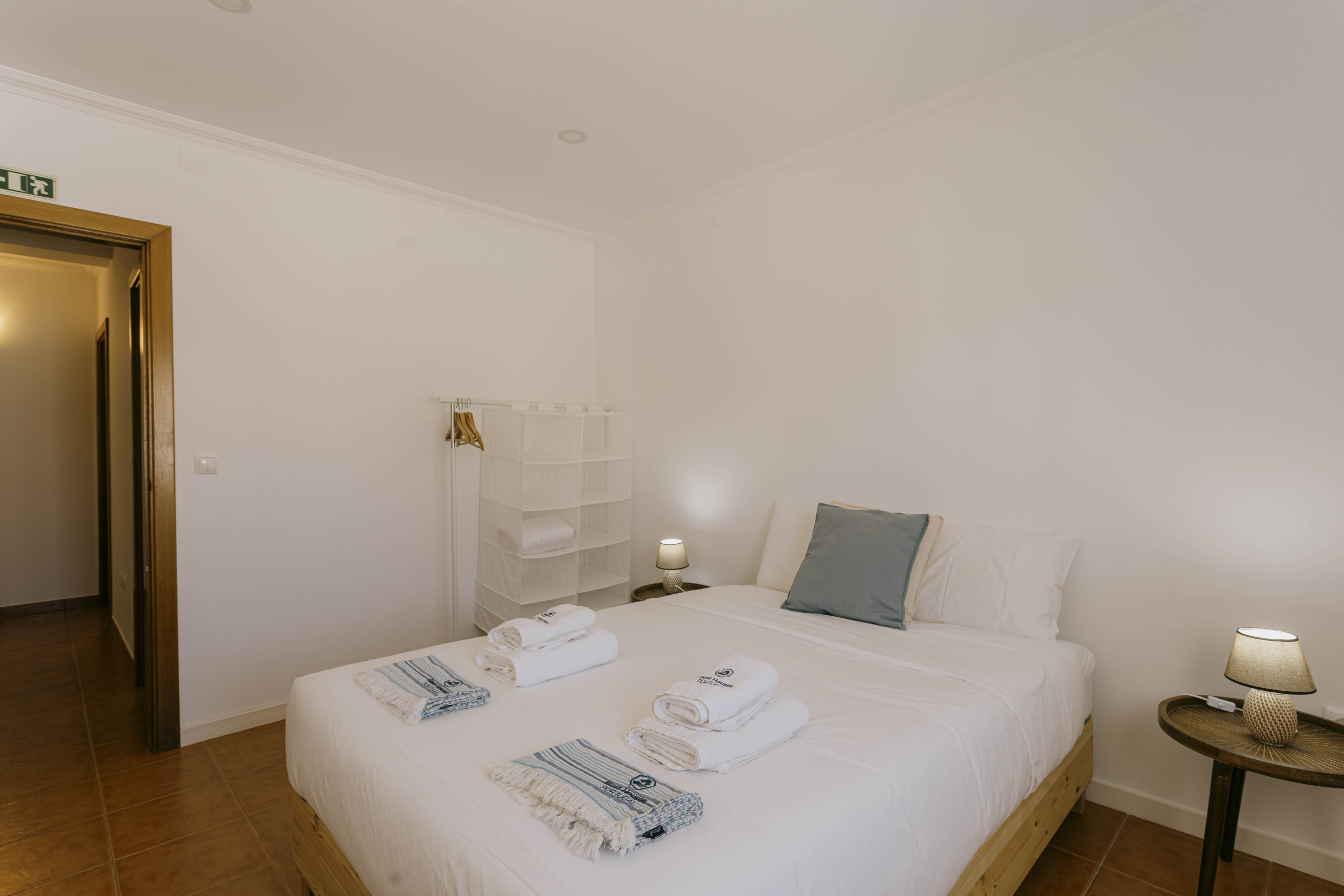 O apartamento dispõe de dois quartos e uma sala de estar confortáveis, oferecendo flexibilidade de acomodação com uma cama de casal, um sofá-cama e duas camas individuais. A luminosidade e o design prático garantem um ambiente acolhedor e relaxante após um dia de exploração das maravilhas de Peniche.