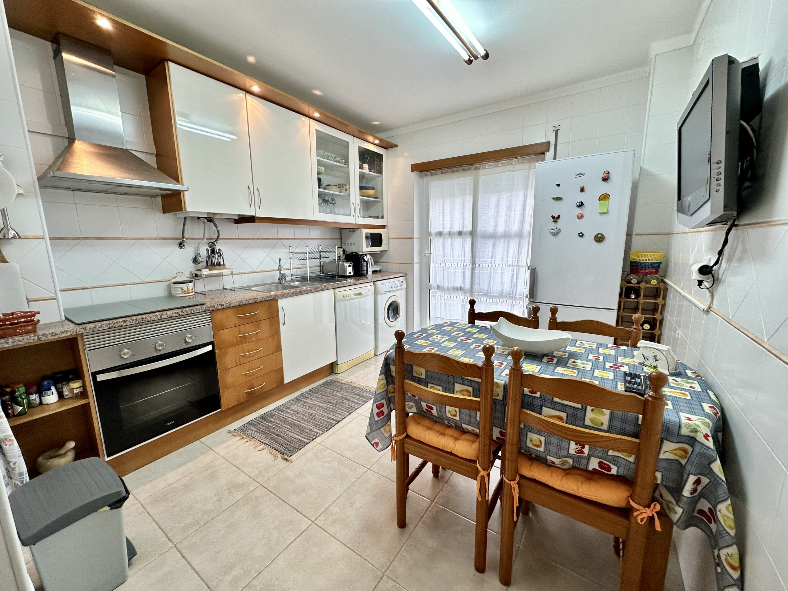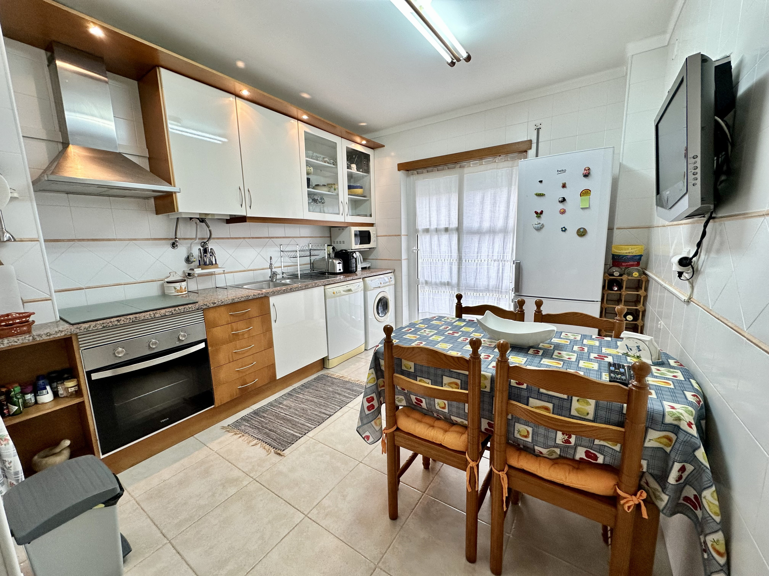 La cocina totalmente equipada es un verdadero punto alto del apartamento. Con electrodomésticos modernos como lavadora, refrigerador, congelador, lavavajillas, horno, microondas, tostadora, cafetera y hervidor, los huéspedes pueden preparar comidas deliciosas con facilidad. El área de comedor integrada hace que las comidas en familia sean aún más especiales.