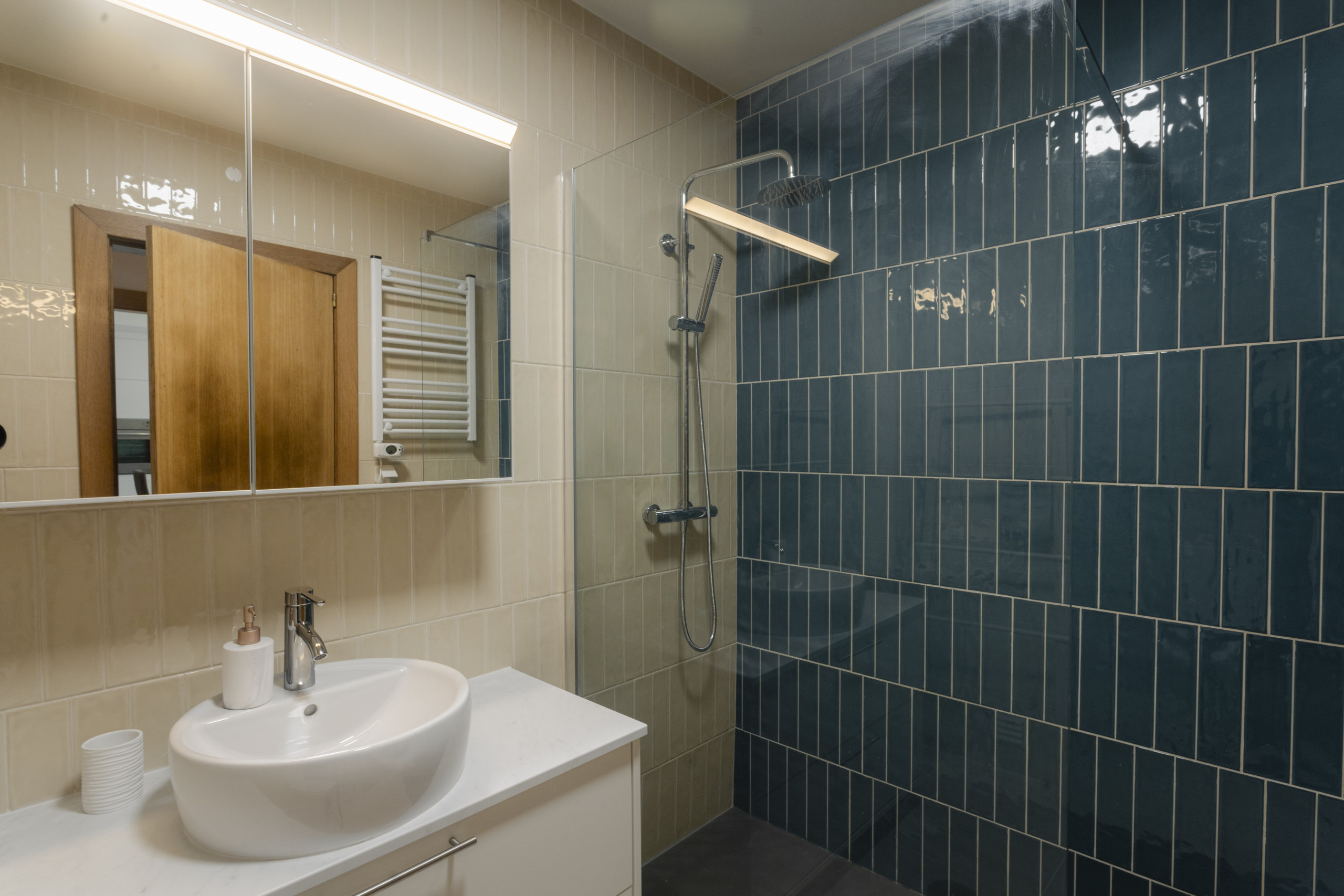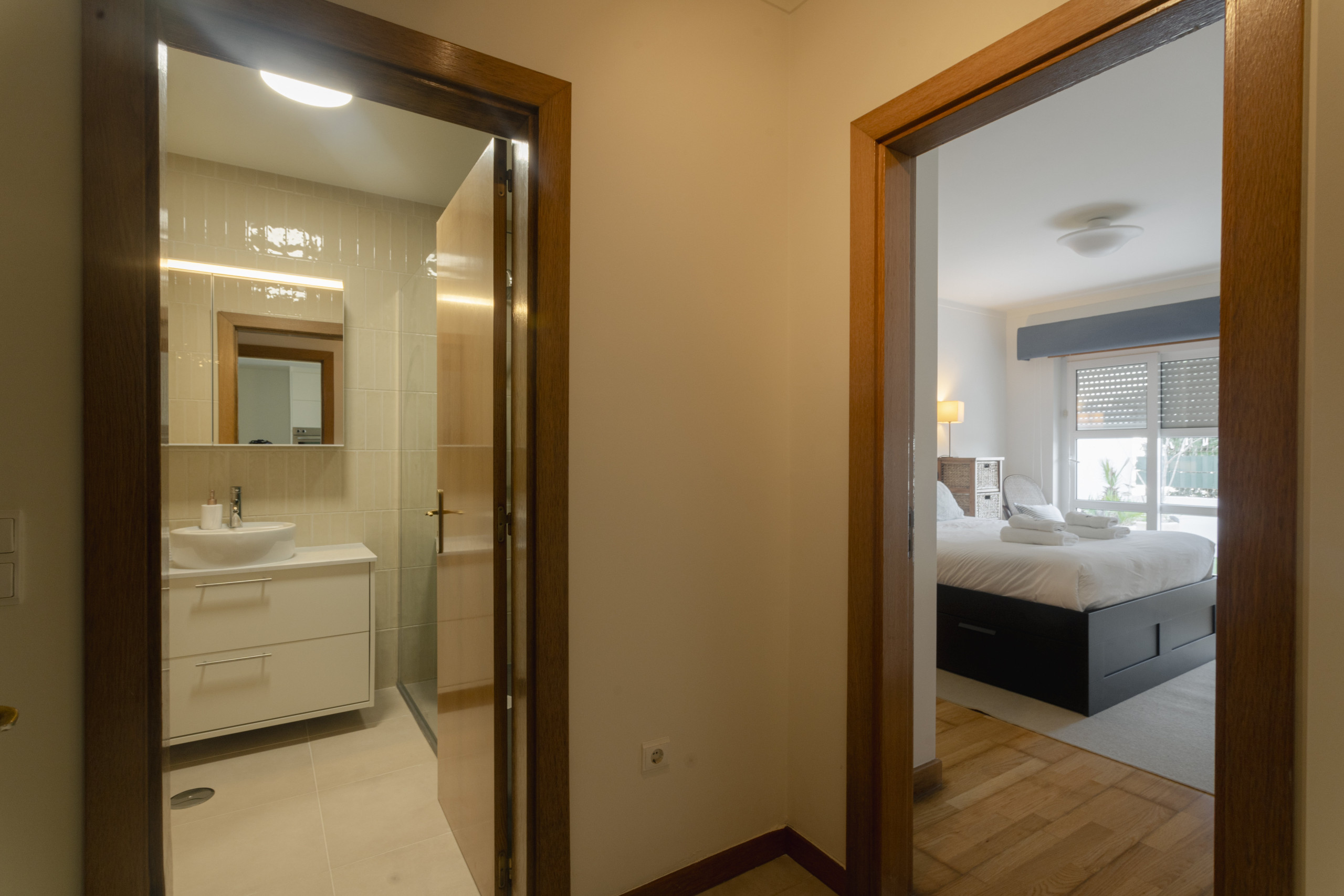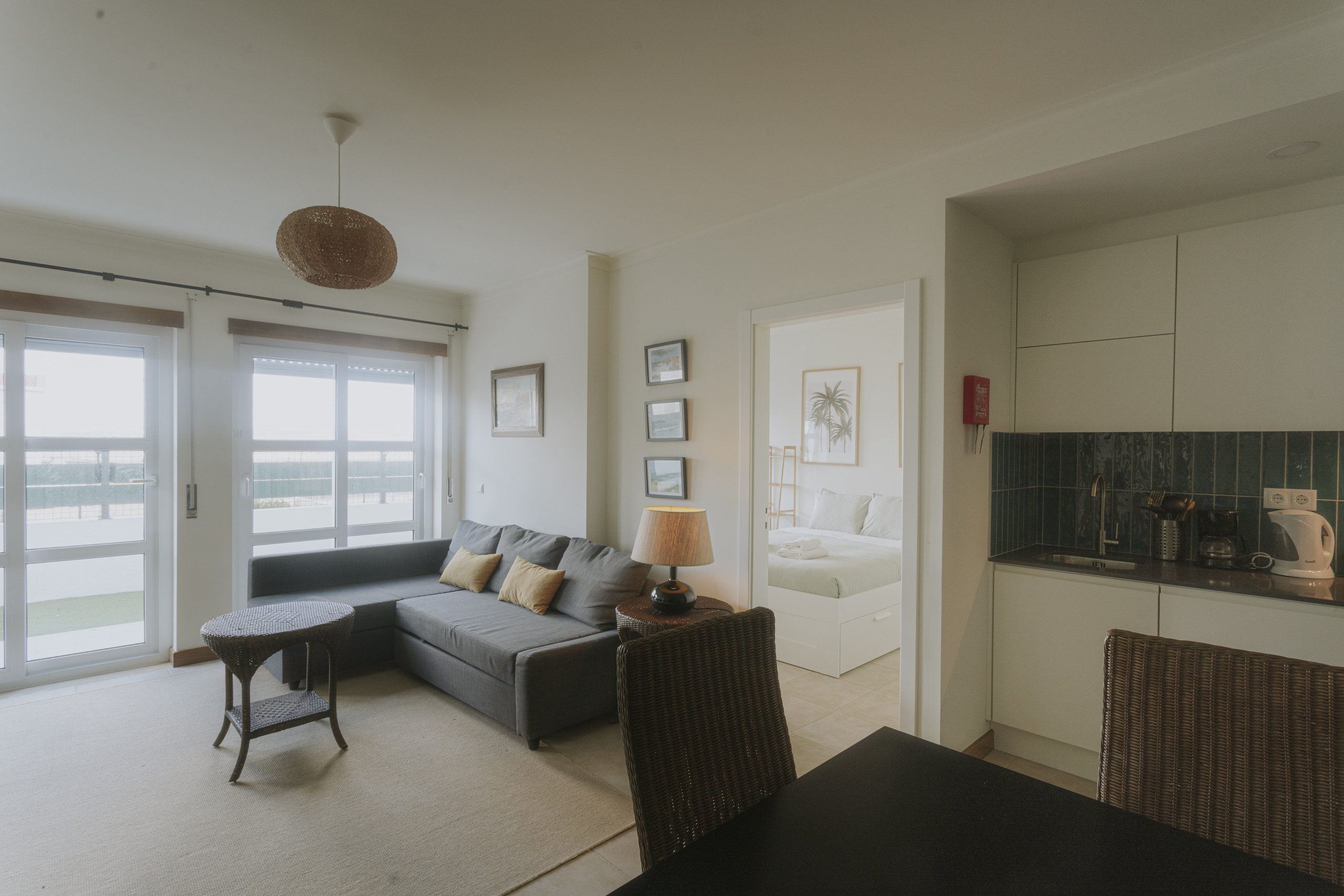 El espacio cuenta con dos habitaciones decoradas, ambas con una cama de matrimonio y una sala de estar también decorada que dispone de un sofá-cama, permitiendo acomodar cómodamente hasta 6 personas. La luminosidad y el diseño cuidadoso crean un ambiente relajante y funcional, ideal para quien busca un hogar lejos de casa.