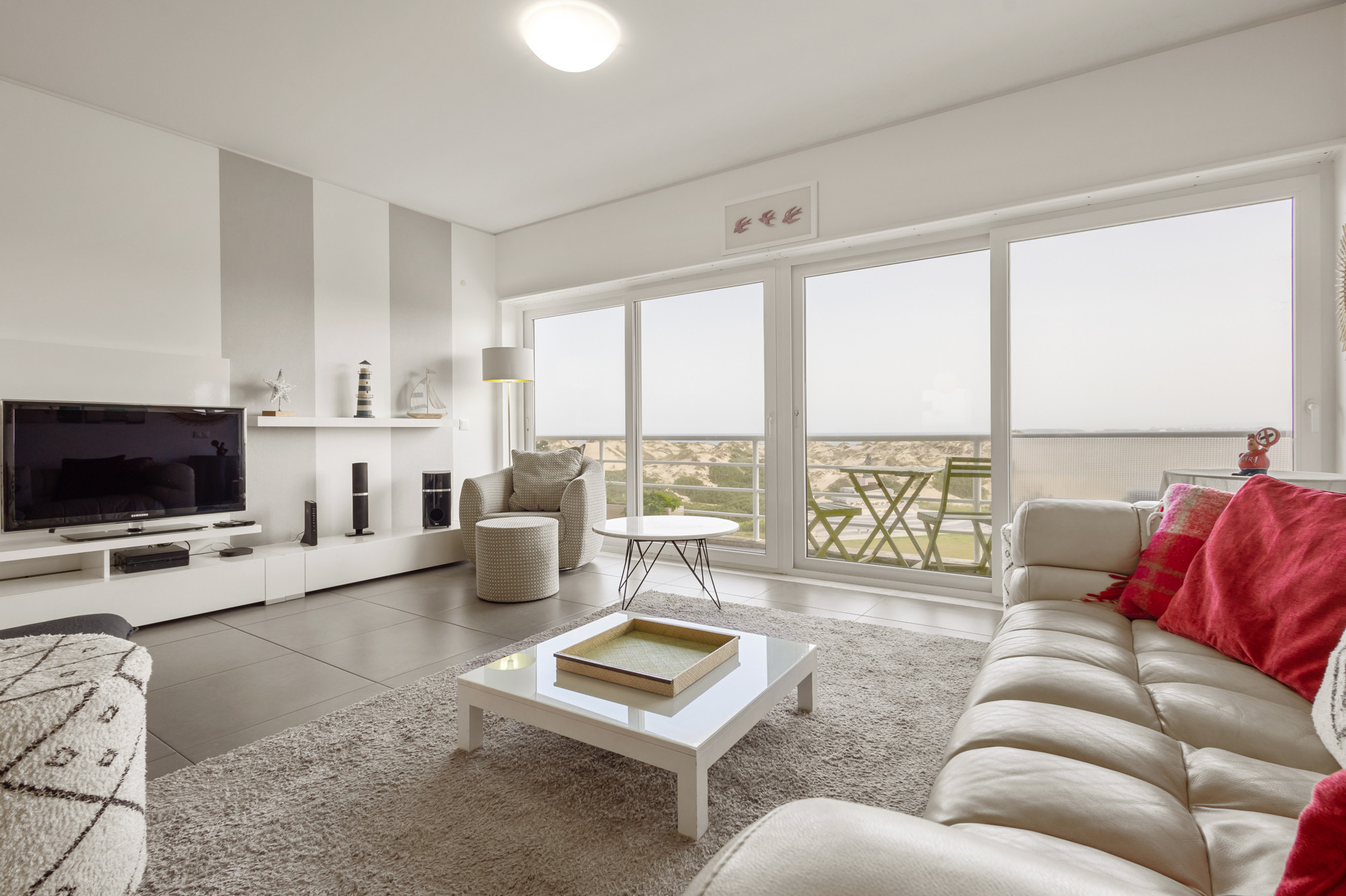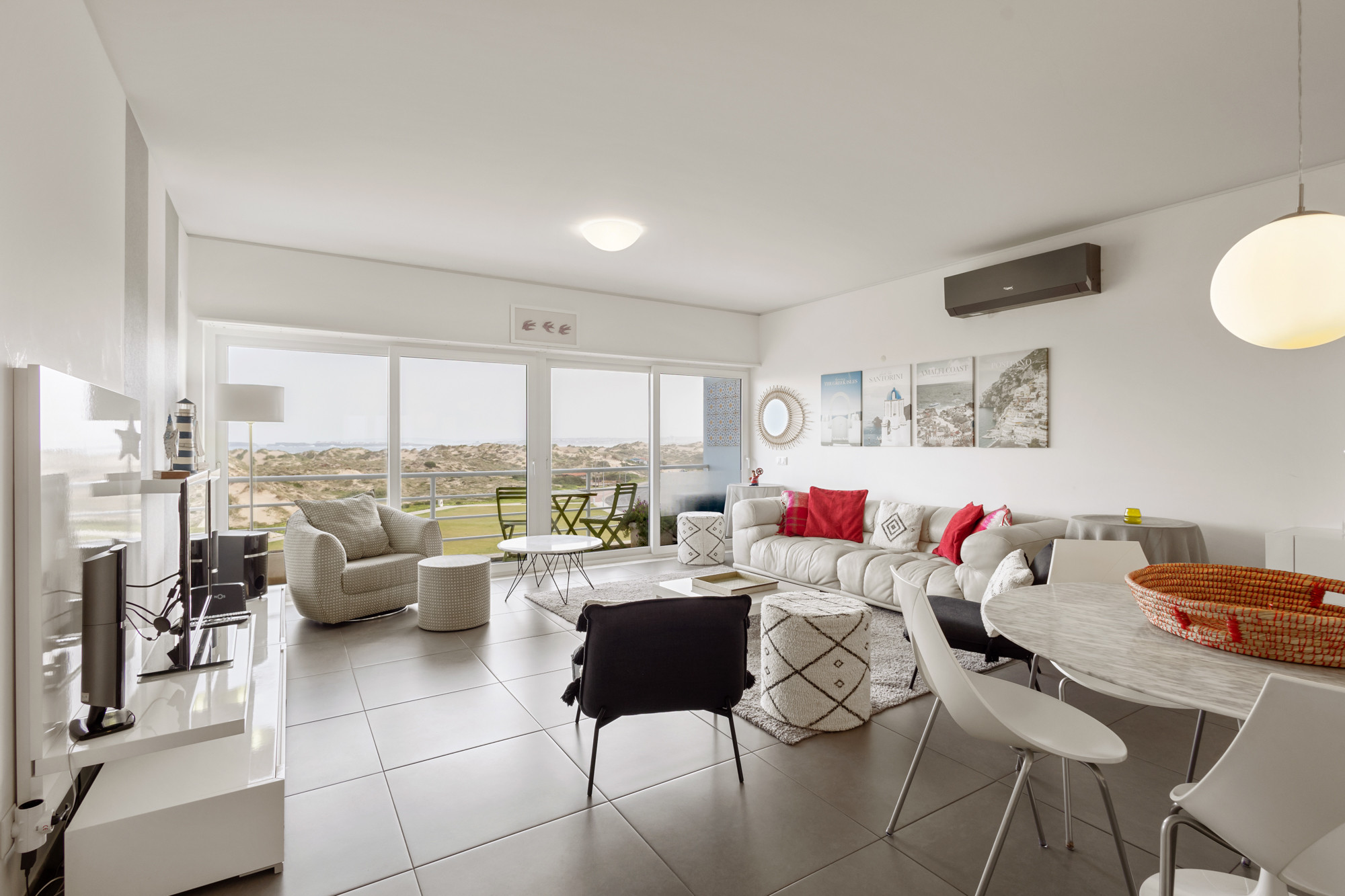 Imagínese relajándose en el cómodo sofá de la sala de estar, admirando la impresionante vista al océano a través de la amplia terraza. Este acogedor espacio es el escenario ideal para momentos de relajación y convivencia con sus seres queridos.