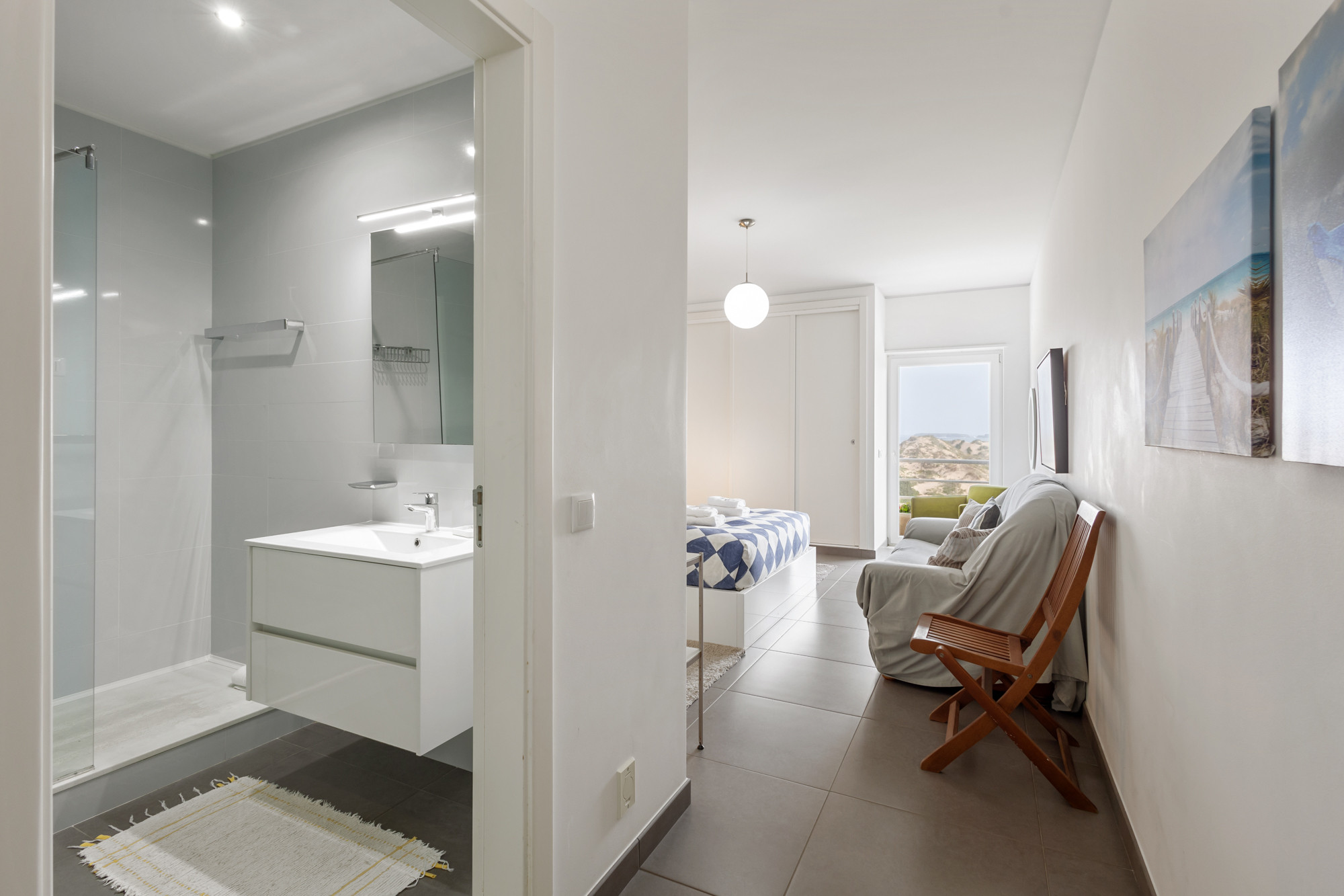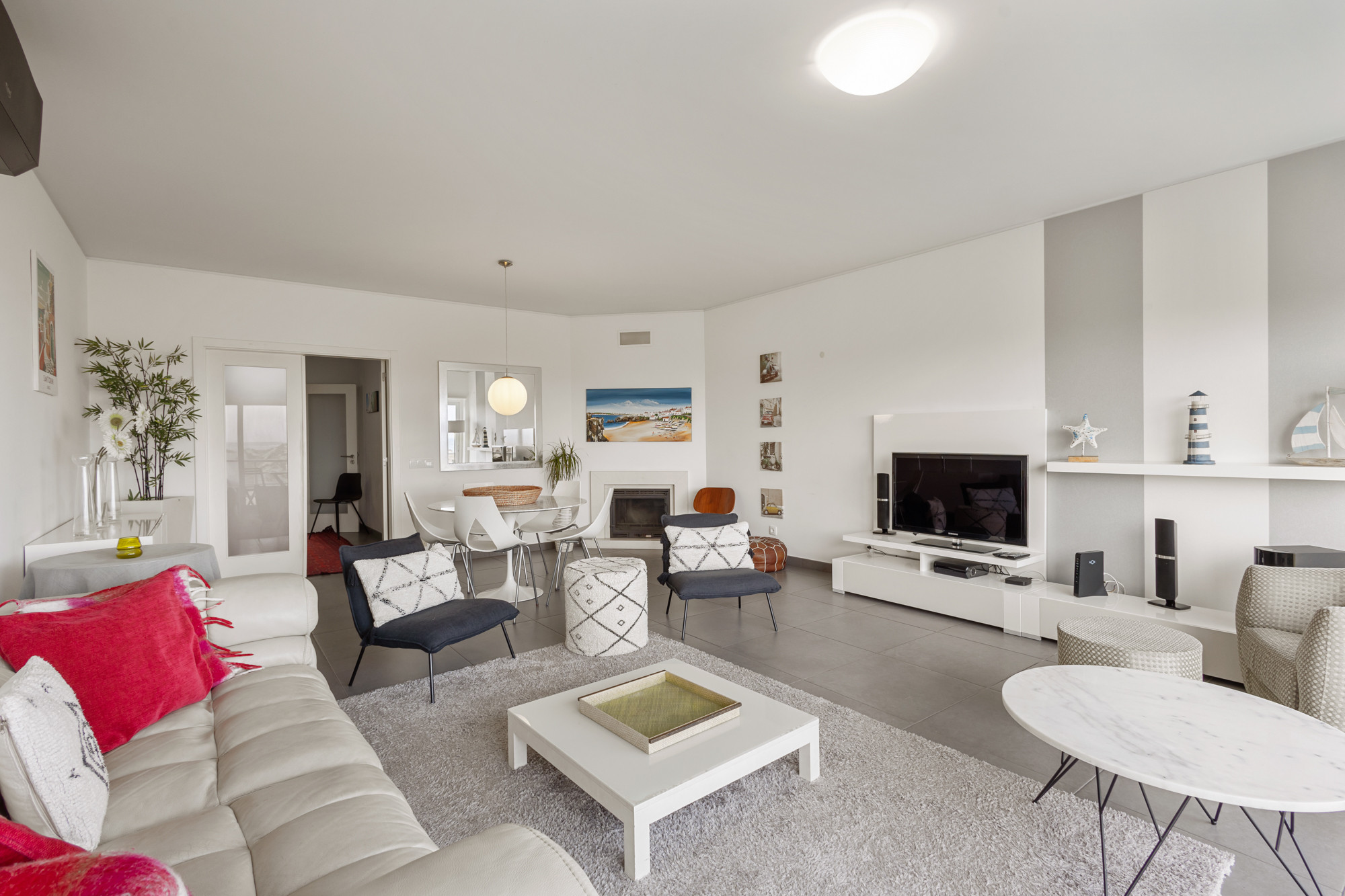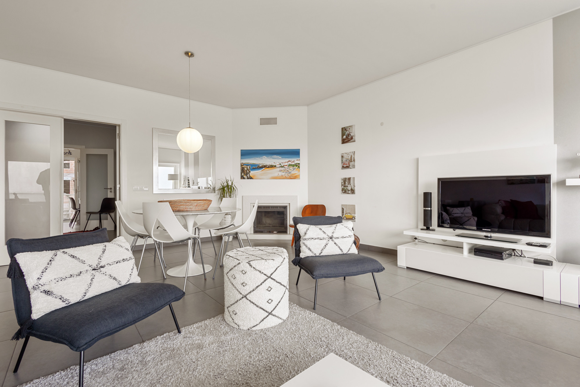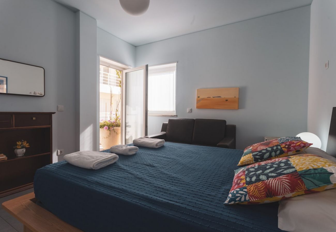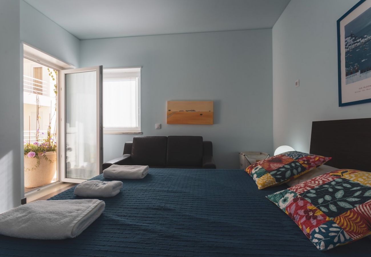 El apartamento cuenta con dos habitaciones y una sala de estar cómodas, ofreciendo flexibilidad de alojamiento con una cama de matrimonio, un sofá-cama y dos camas individuales. La luminosidad y el diseño práctico garantizan un ambiente acogedor y relajante después de un día de exploración de las maravillas de Peniche.