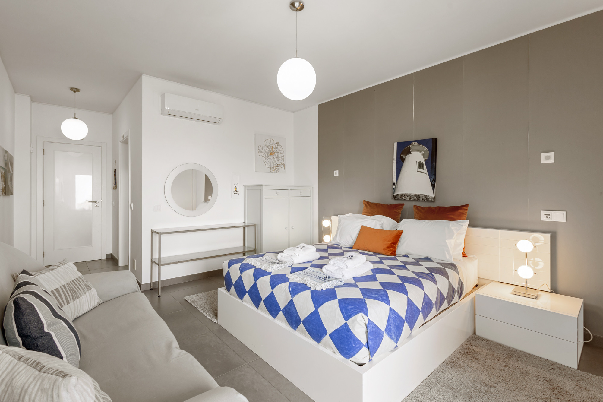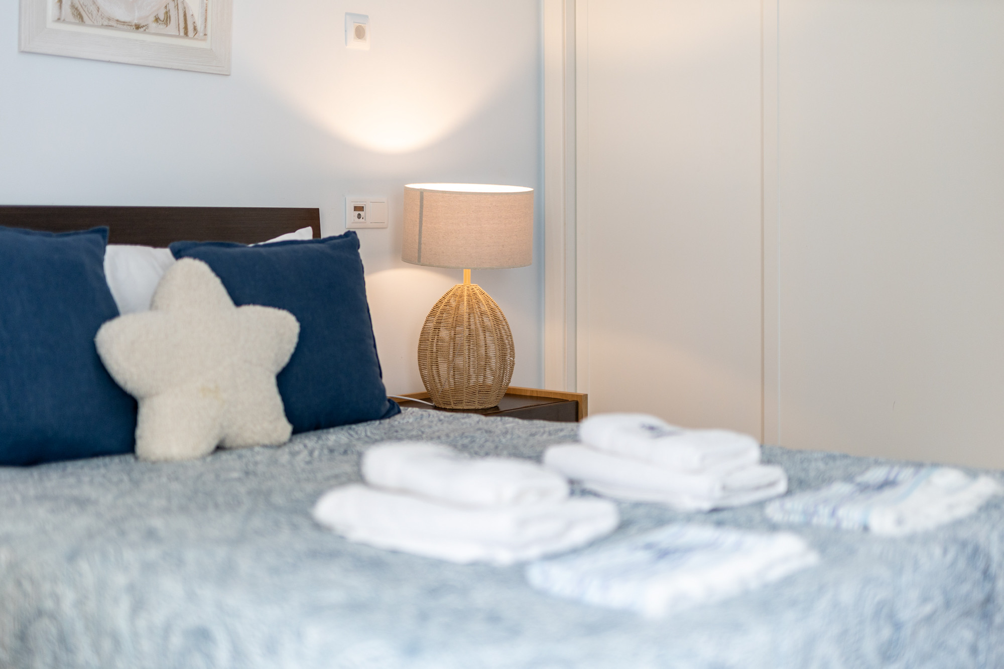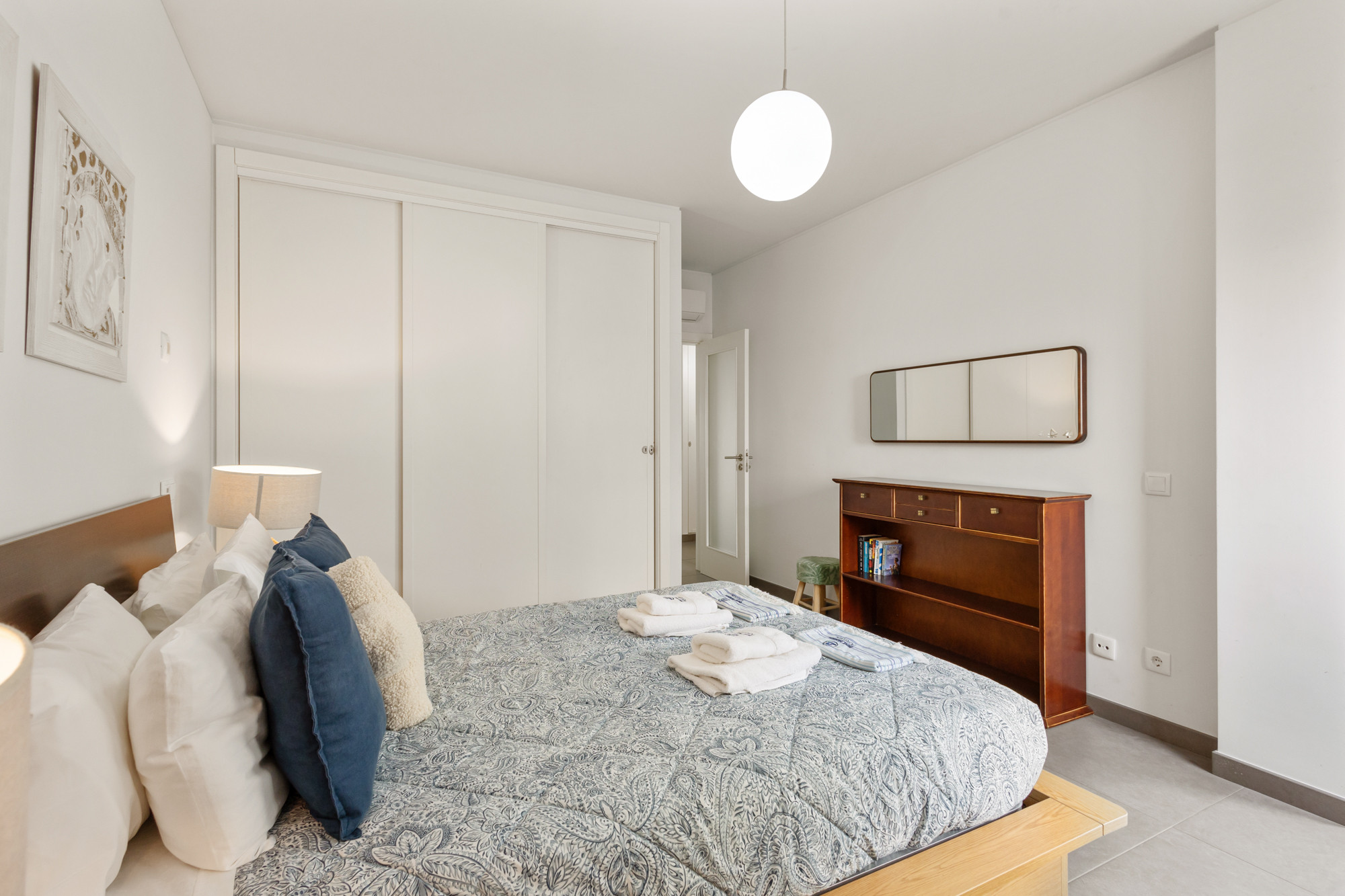 Con tres habitaciones espaciosas, dos con camas matrimoniales y dos individuales, este apartamento aloja cómodamente hasta 6 personas. Cada habitación cuenta con armario y aire acondicionado, garantizando su bienestar durante la estancia.