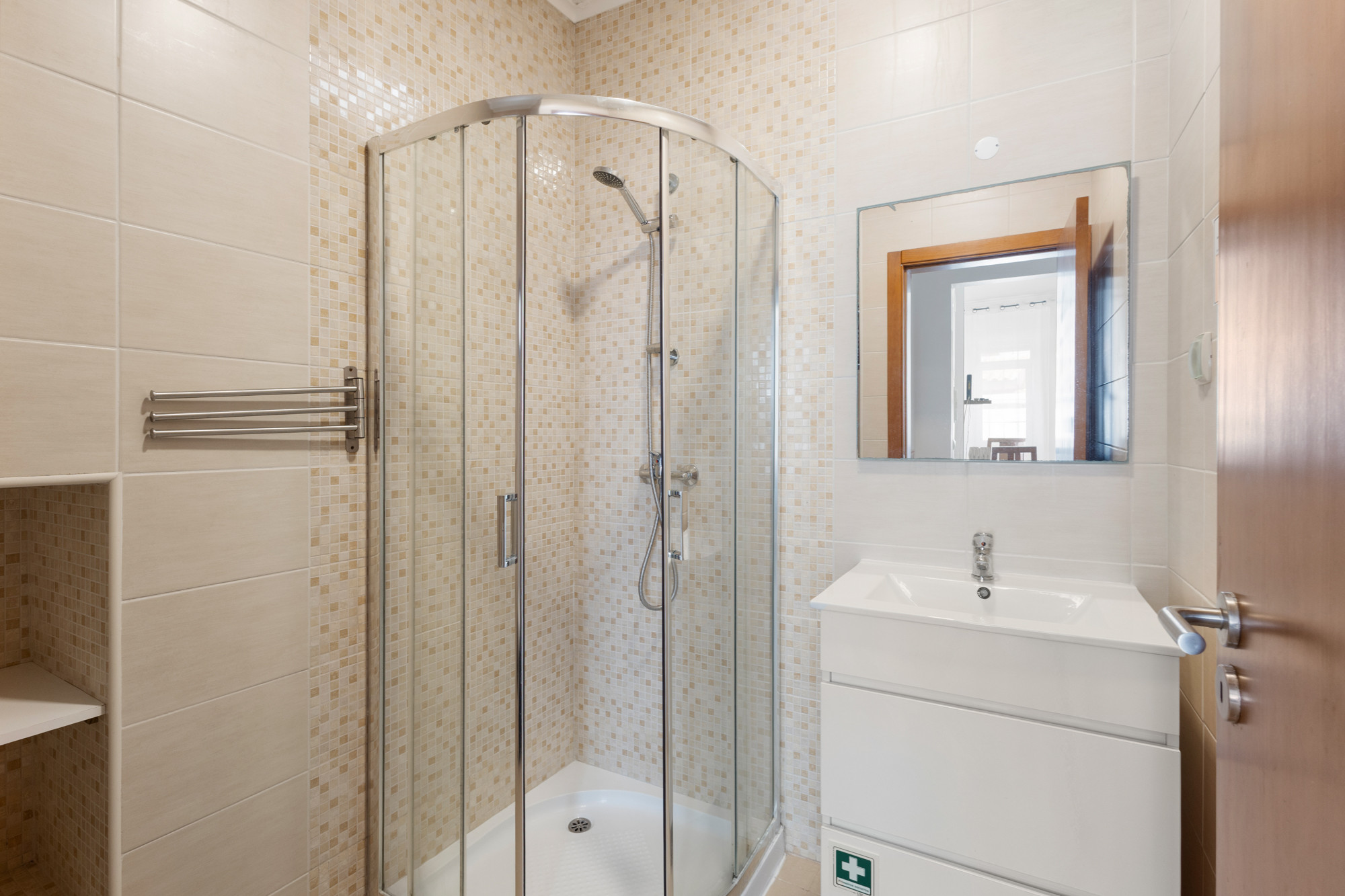 El inmueble cuenta con un cuarto de baño privado con ducha, perfecto para relajarse después de un día de exploración. El espacio es ideal para parejas o pequeñas familias que buscan una estancia tranquila y bien ubicada.