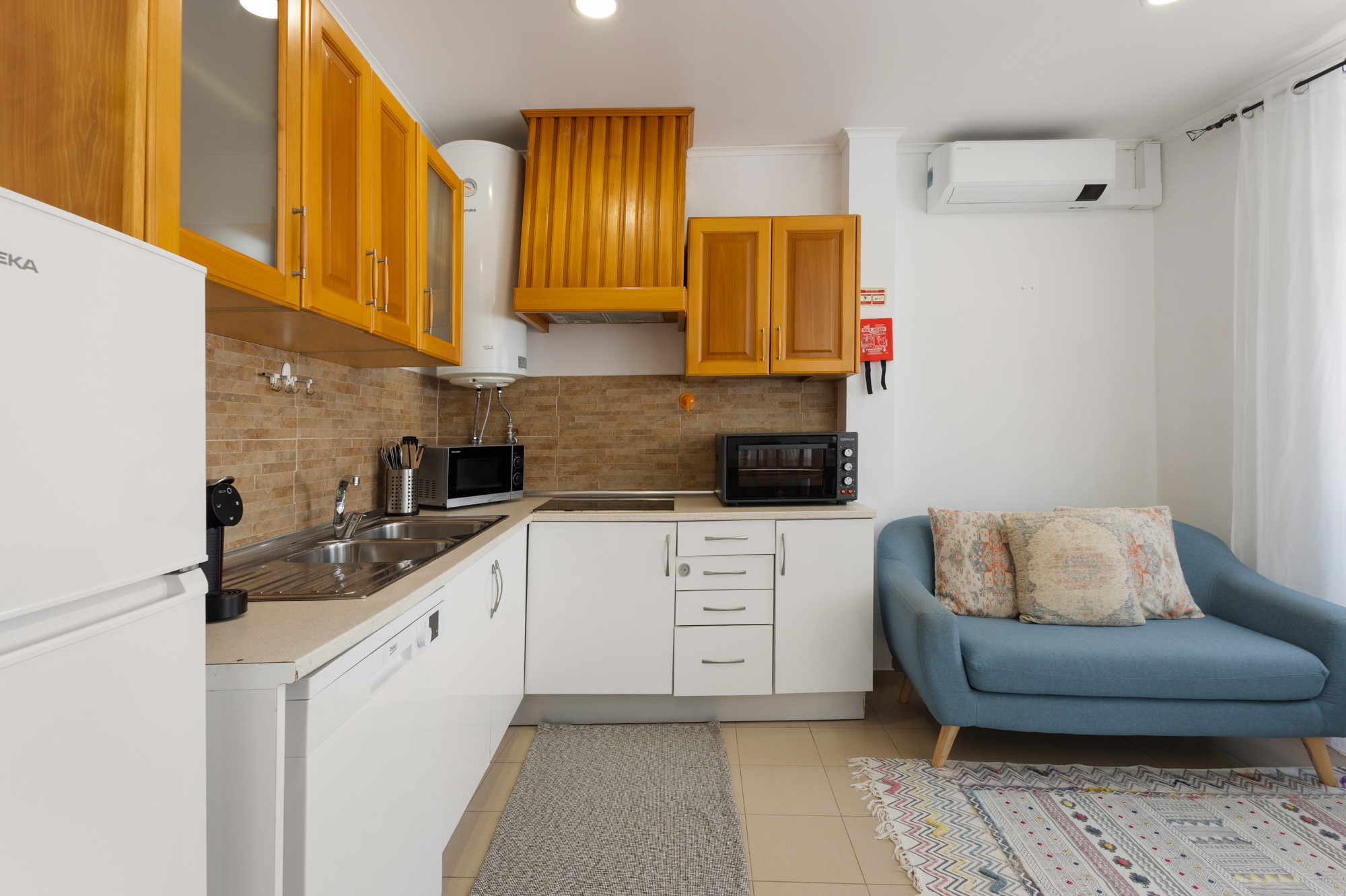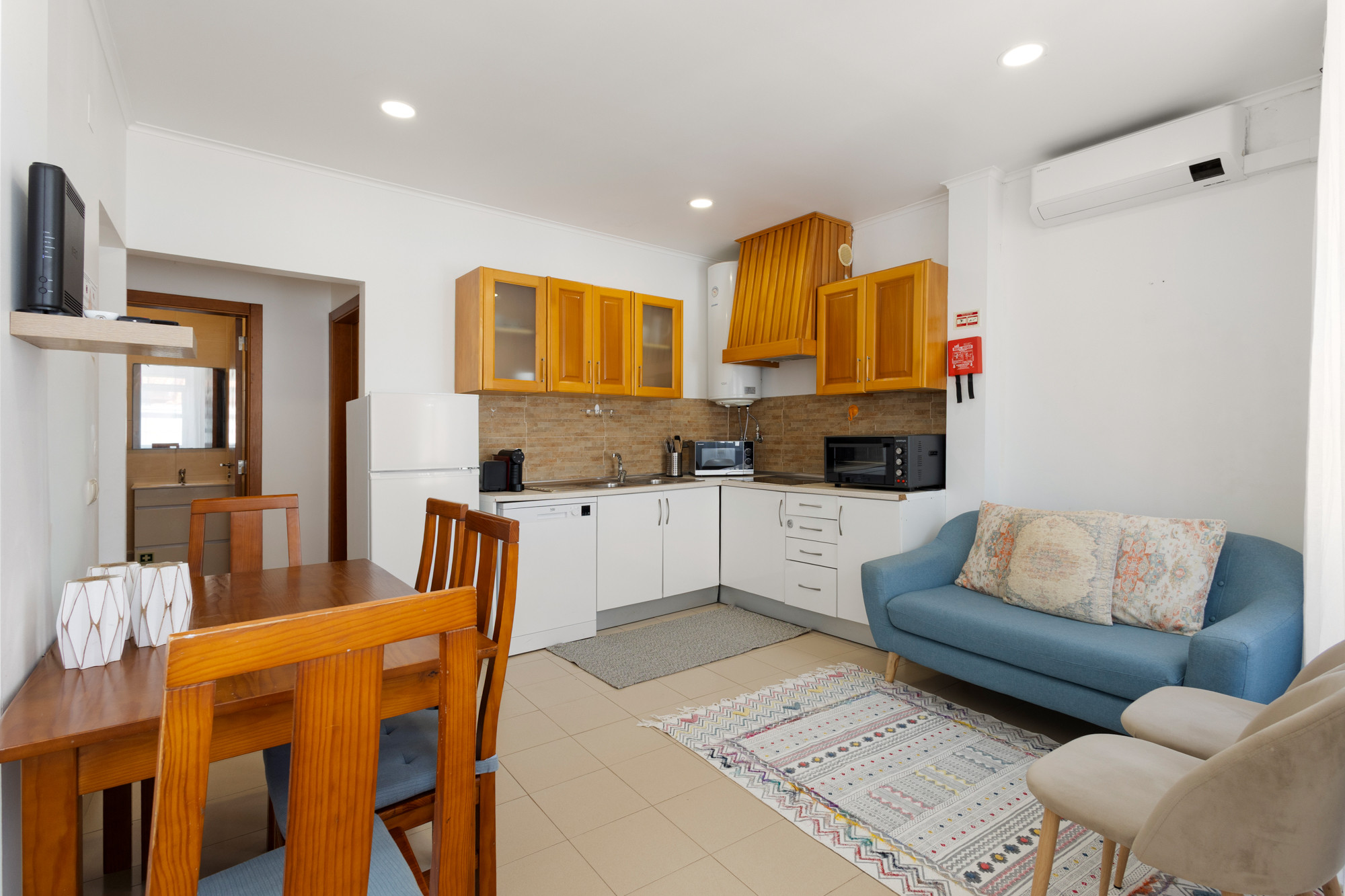 Un acogedor mostrador completa el espacio, ofreciendo un lugar perfecto para disfrutar del ambiente o tomar un desayuno relajante. Ubicado en Peniche, este apartamento es ideal para quienes buscan una experiencia auténtica y acogedora en el corazón de esta encantadora región portuguesa.